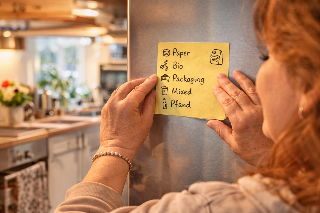 Найпростіше — одразу уточнити правила в конкретному домі. У Німеччині навіть у сусідніх будинках можуть бути нюанси: де стоять контейнери, коли виносити, куди саме відносити скло.